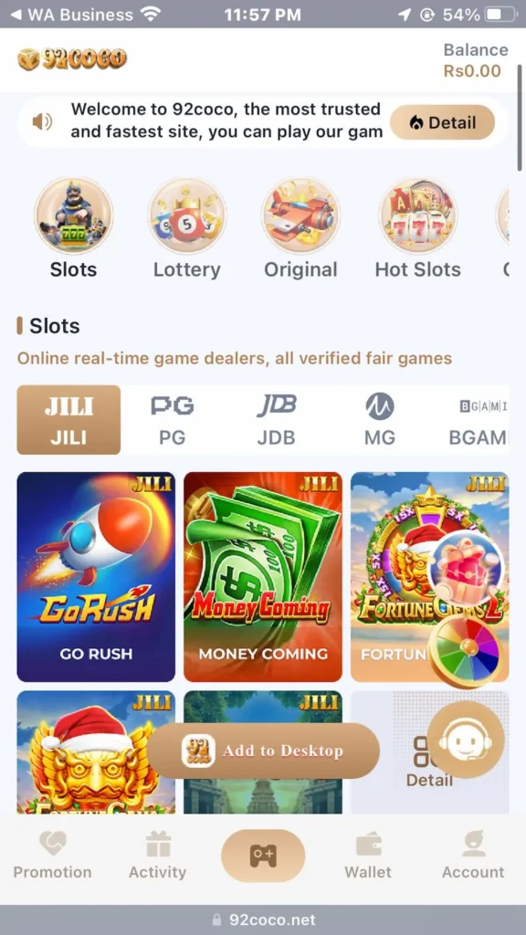 The 92Coco Game is a modern and exciting option for people who enjoy mobile casino games and simple earning opportunities. It combines entertainment, smooth performance, and easy payments in one platform. The clean interface, multiple games, and daily bonuses make it suitable for beginners as well as regular players. For users in Pakistan, the support for JazzCash and Easypaisa is a big advantage. It removes complicated banking steps and makes deposits and withdrawals fast.